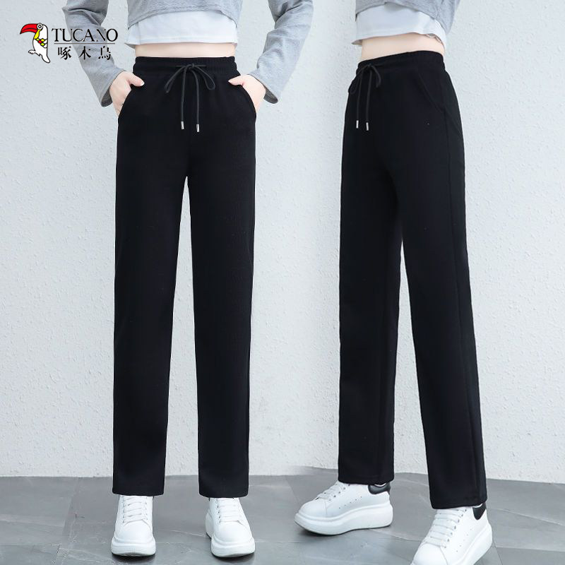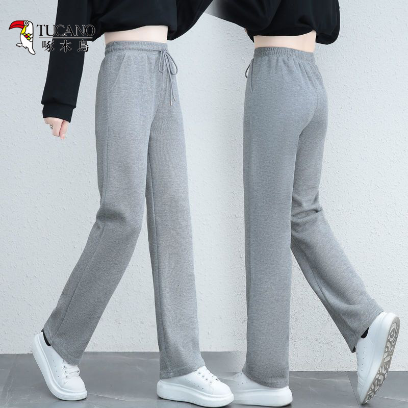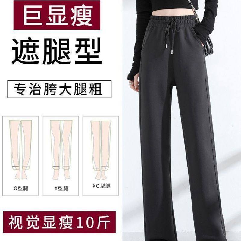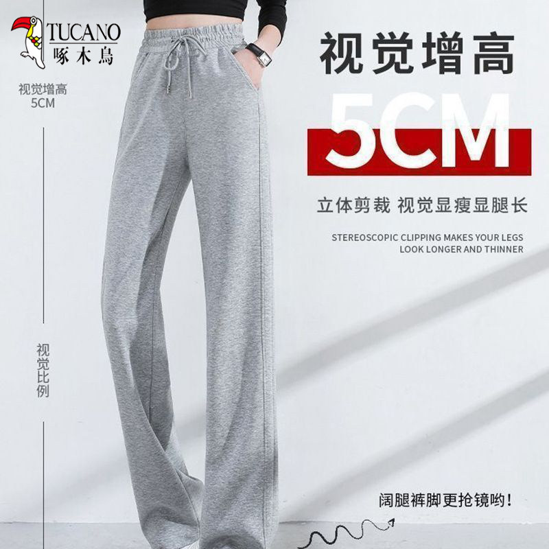 啄木鸟运动裤女春秋款直筒宽松大码垂坠感高腰显瘦小个子窄版阔腿