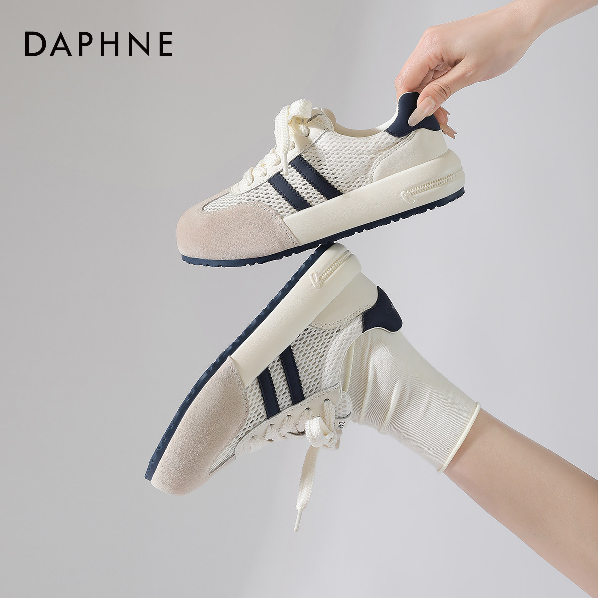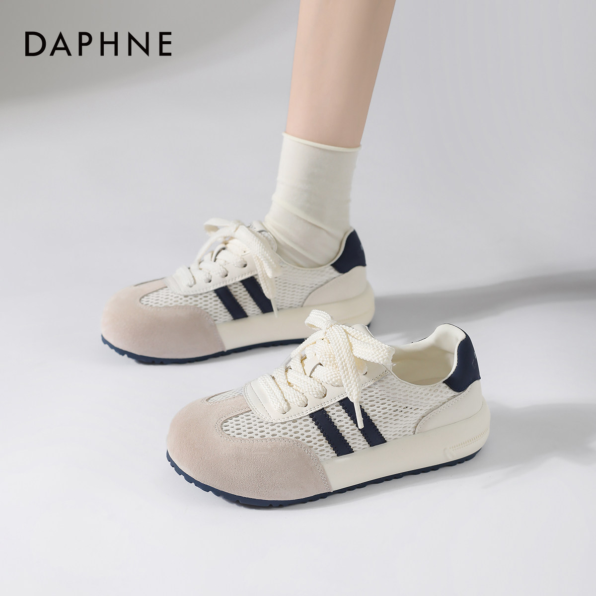 达芙妮德训鞋女2025新款夏季网面透气女鞋轻薄款网鞋板鞋运动鞋子