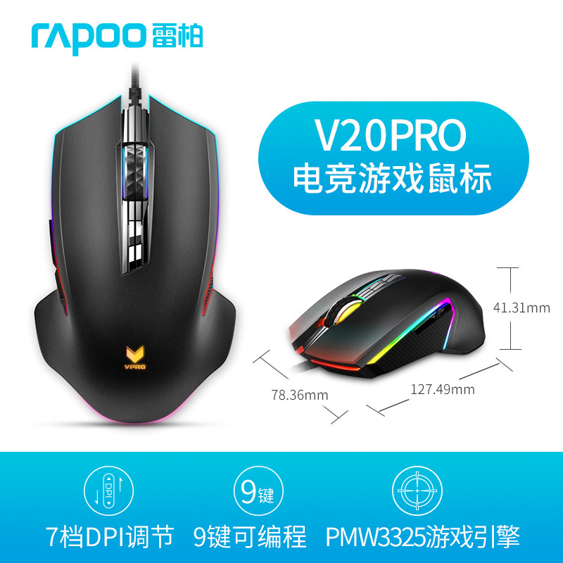 雷柏V20S游戏鼠标 有线吃鸡电脑绝地求生鼠标宏编程电脑网吧网咖
