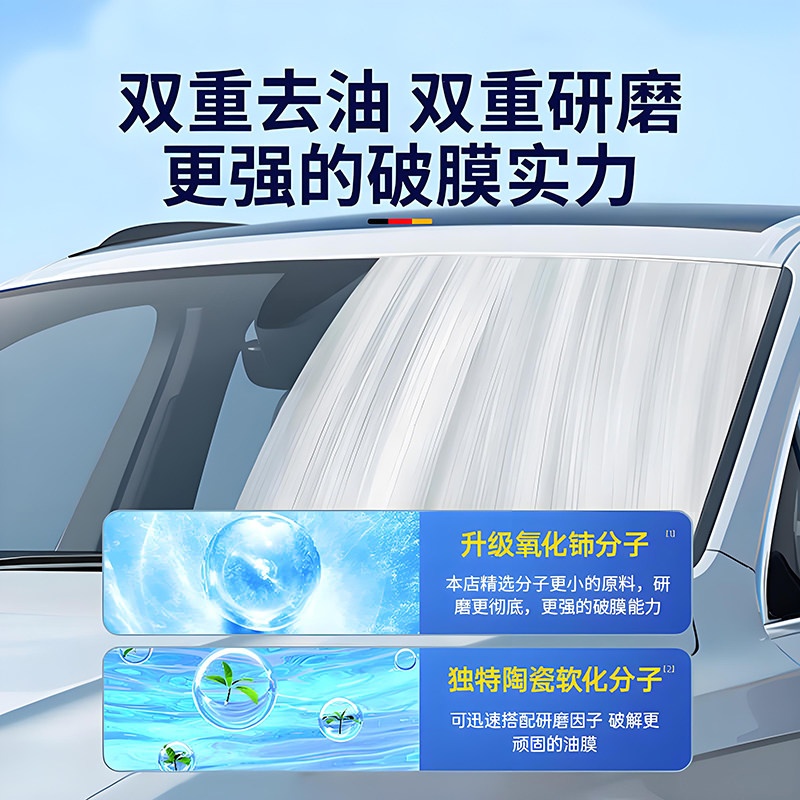 玻璃抛光精粹液氧化铈汽车油膜去除剂去污去油镀膜划痕清洁液