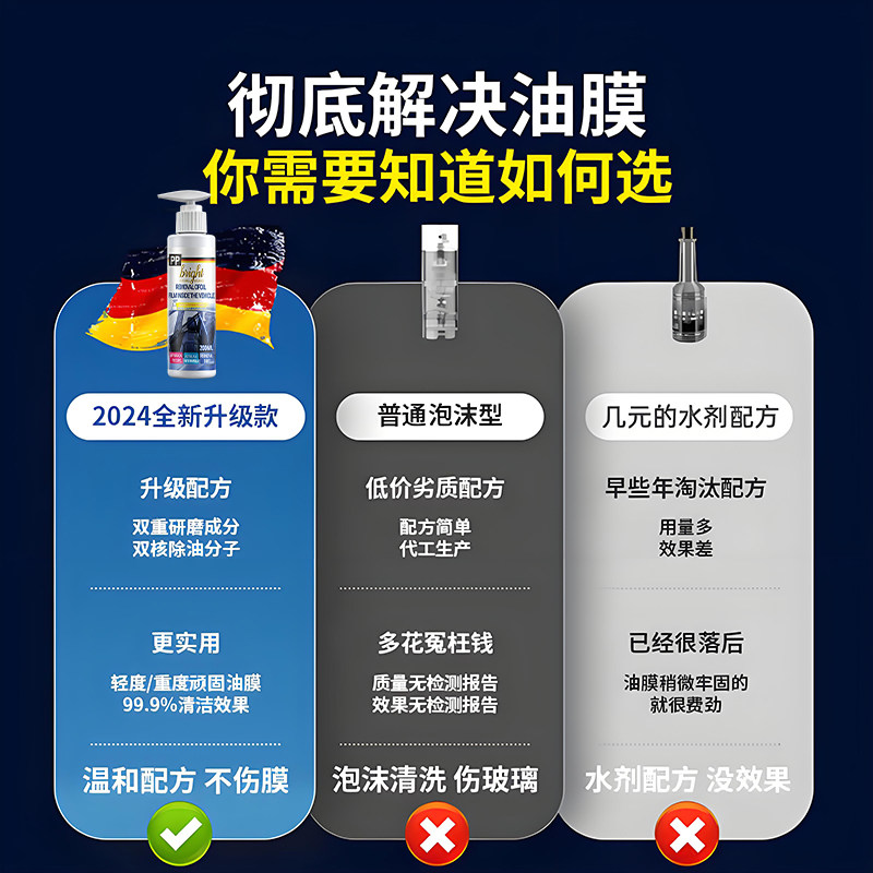 德国油膜去除剂汽车玻璃2026新款前挡风重度油膜清洁清洗神器专用
