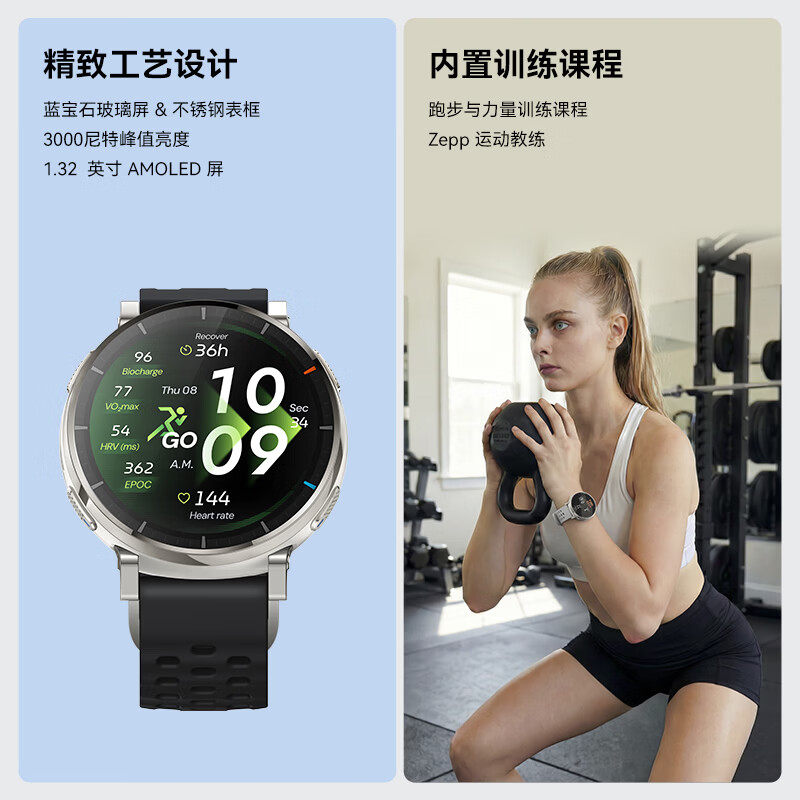AMAZFIT华米Active 3 香槟银 Hyrox混合训练跑步智能运动手表 定位心率血氧男女款士成人学生新款172