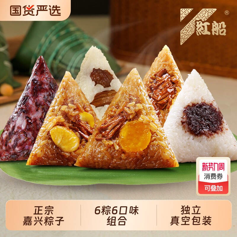 红船粽子多口味全家福嘉兴正宗160克咸蛋黄鲜肉大棕子手工新鲜棕