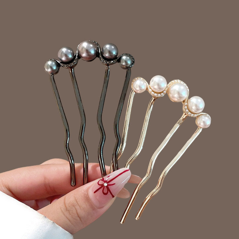 珍珠U型发簪女盘发神器2026新款高端发钗簪子后脑勺插梳发夹头饰