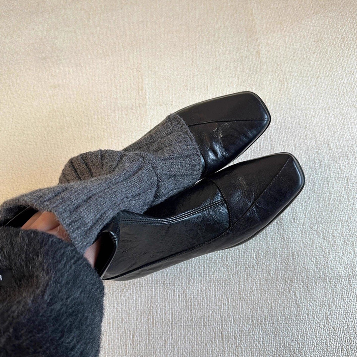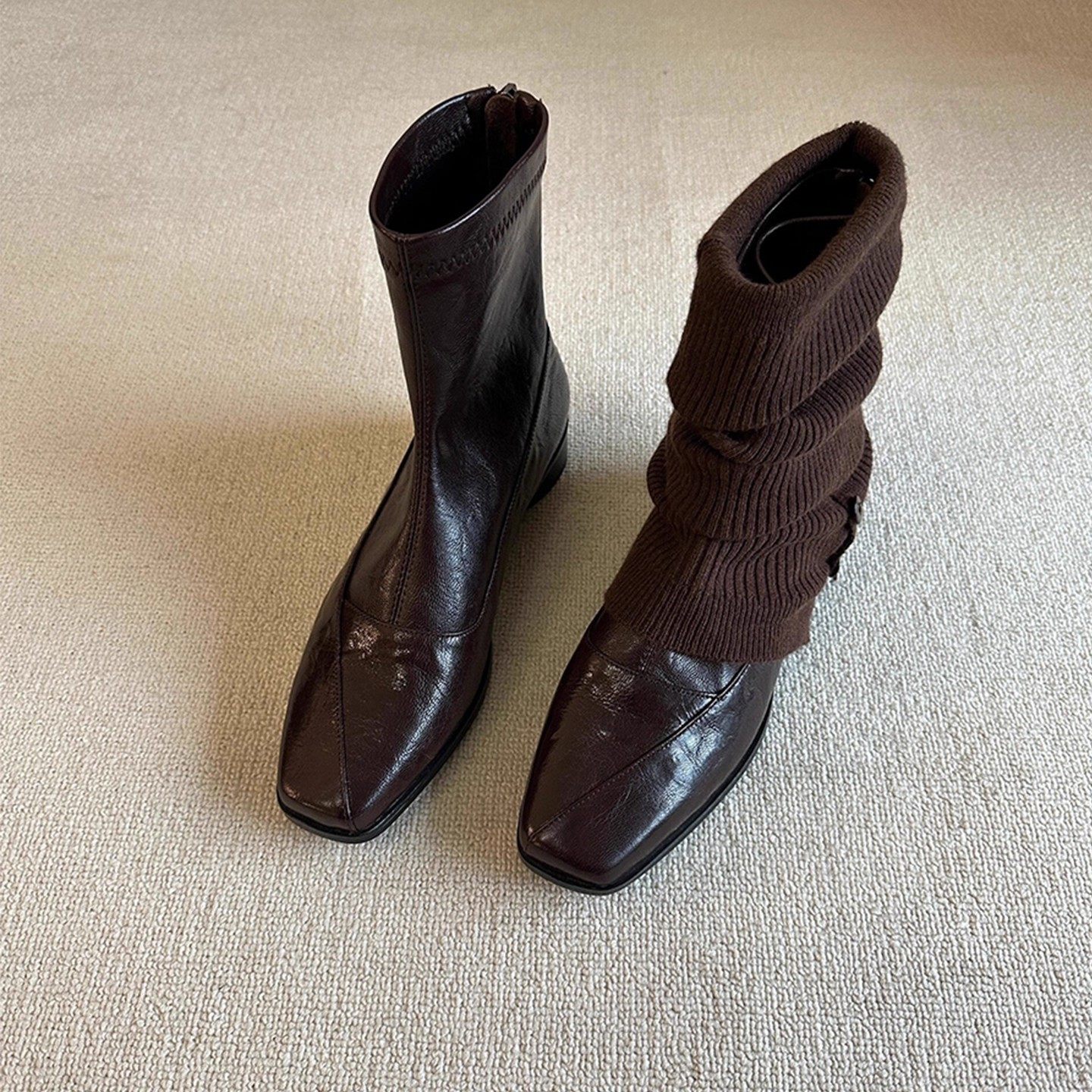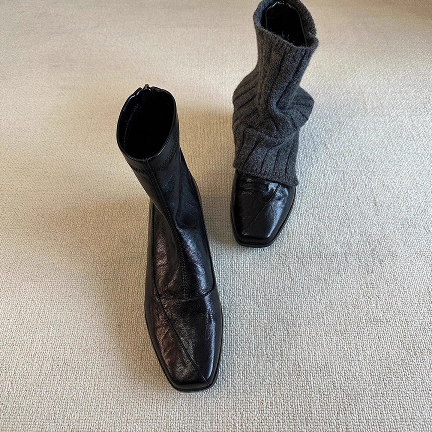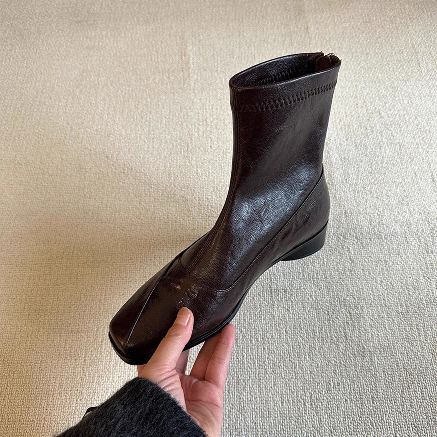 羊皮小短靴女2025年秋冬新款真皮气质方头软底平底瘦瘦靴女粗跟