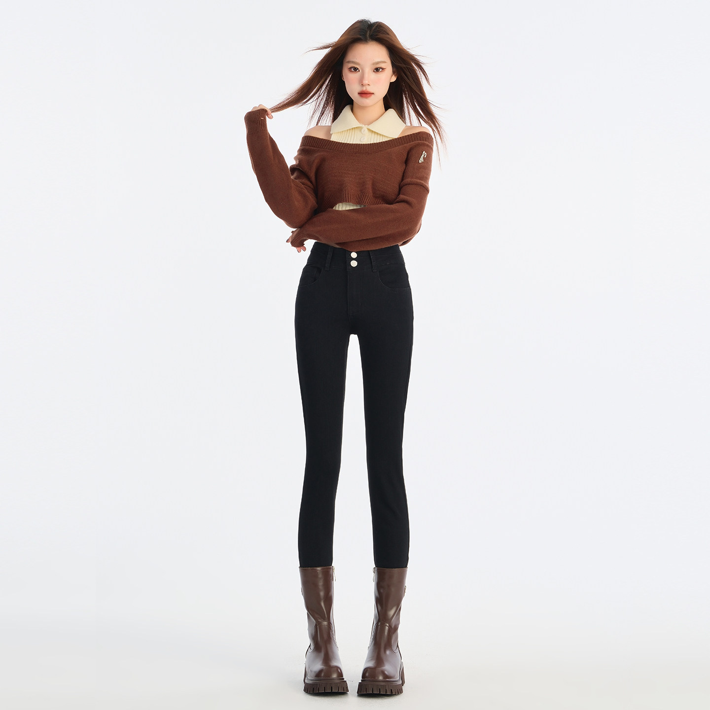 KP真维斯高腰紧身牛仔裤女2025秋冬新款设计感修身显瘦小脚铅笔裤