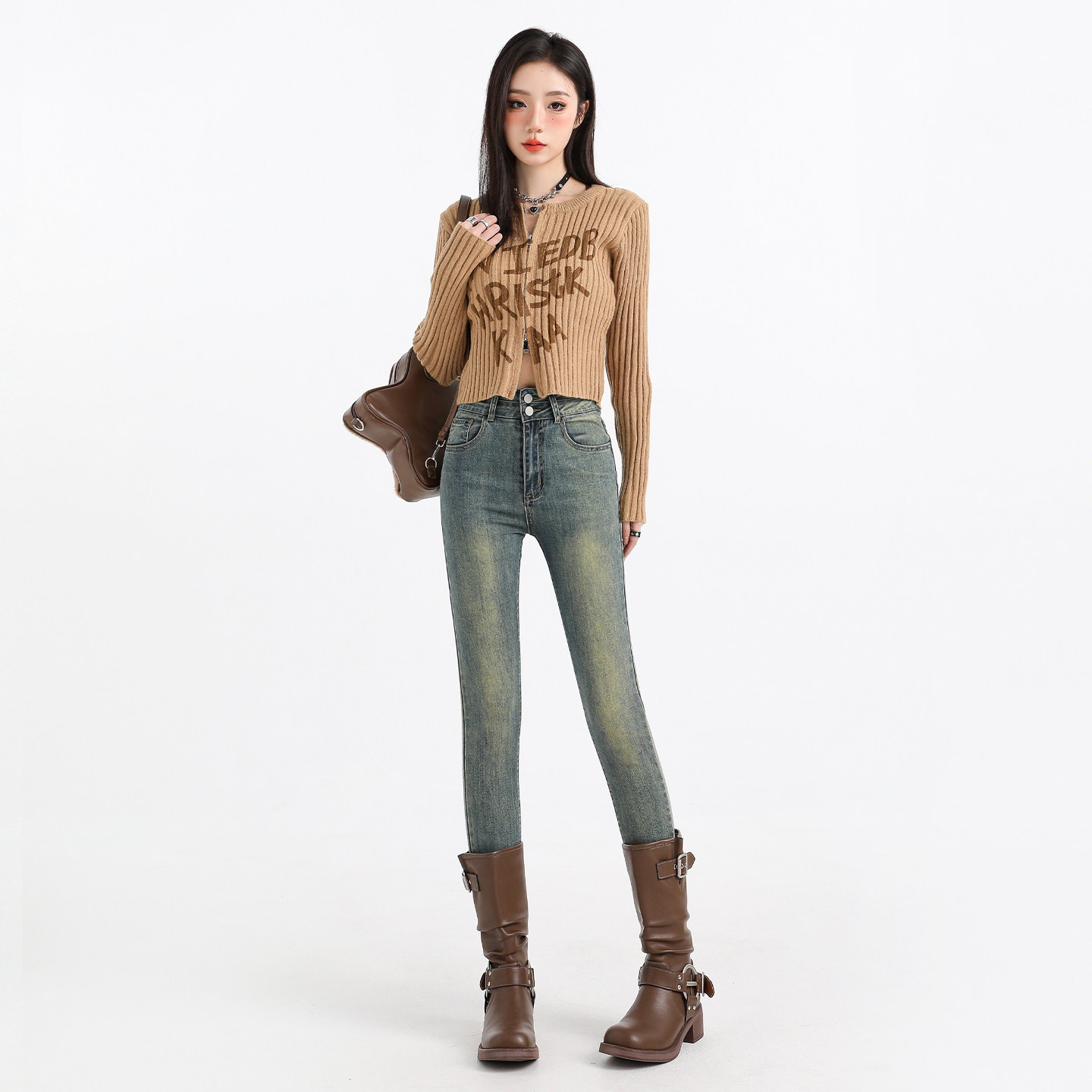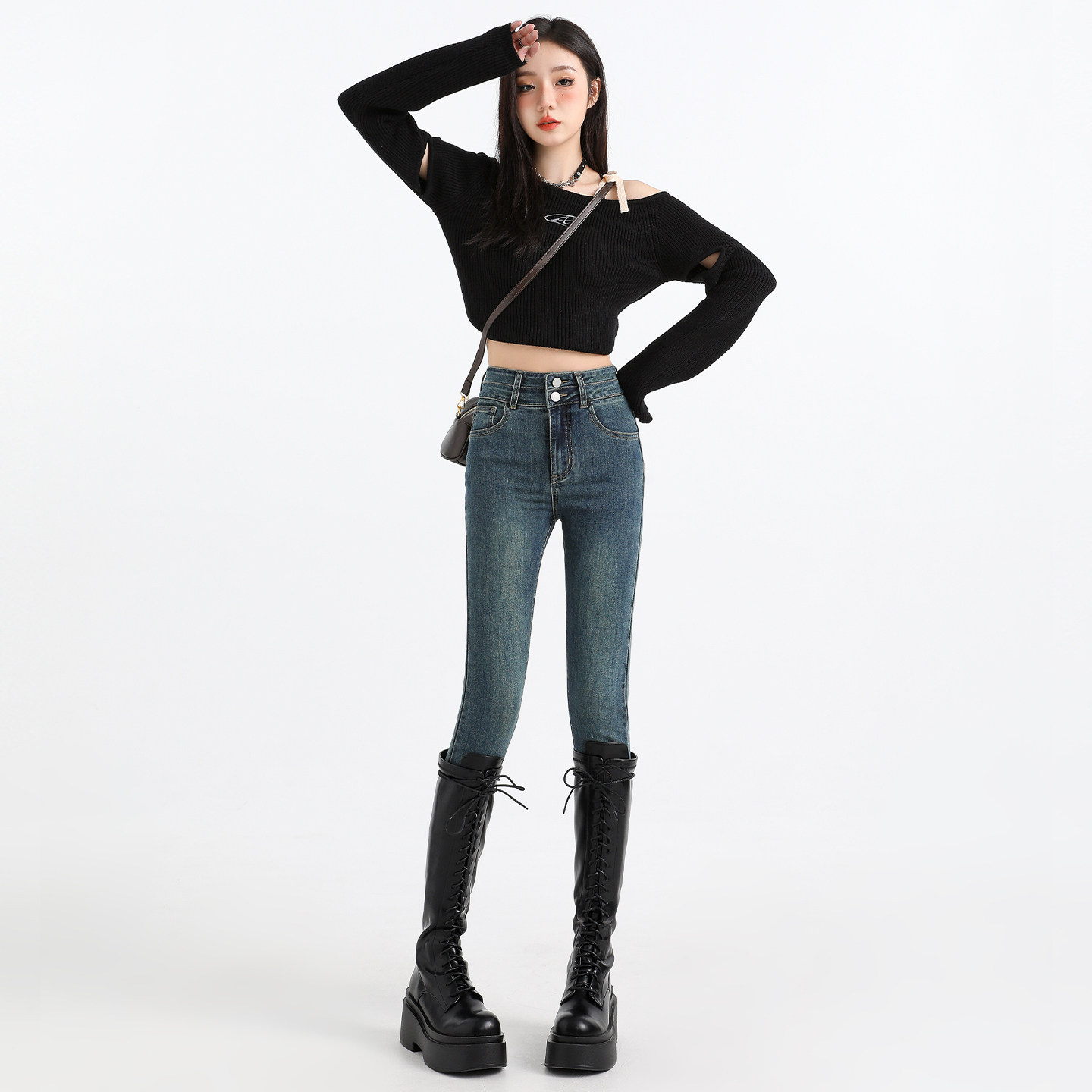 辣妹小脚牛仔裤女秋冬显瘦2024年新款高腰弹力紧身百搭铅笔长裤子