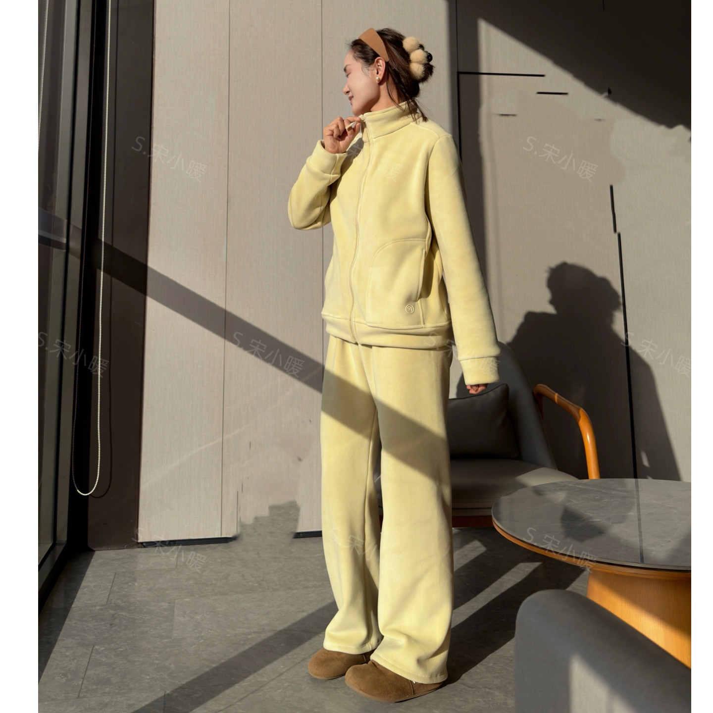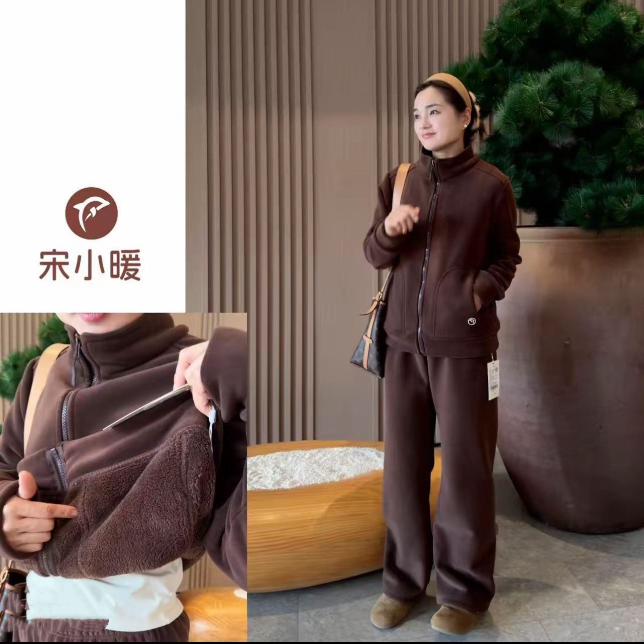 8090宋晓暖秋冬新款立领第五代海豚绒加厚拉链外穿睡衣套装家居服