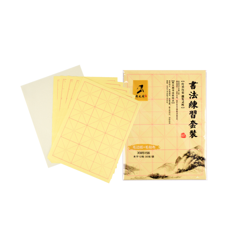希文阁5156毛边纸毛毡套装宣纸米字格12格毛笔字书法练习纸元书用