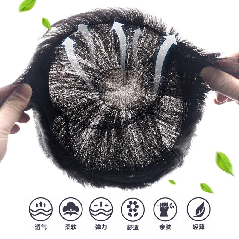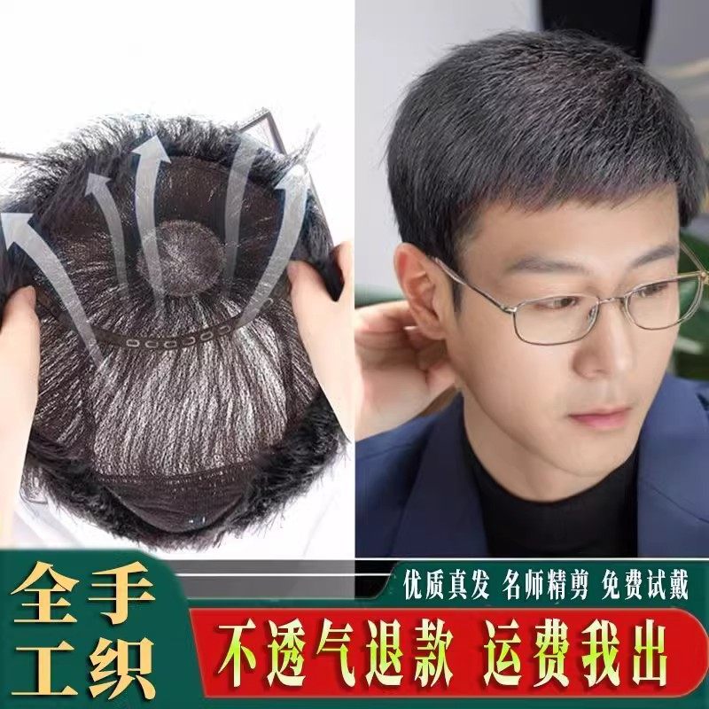 男士假发真发全真人发全头套式许昌全手织轻薄款光头毛寸短发递针