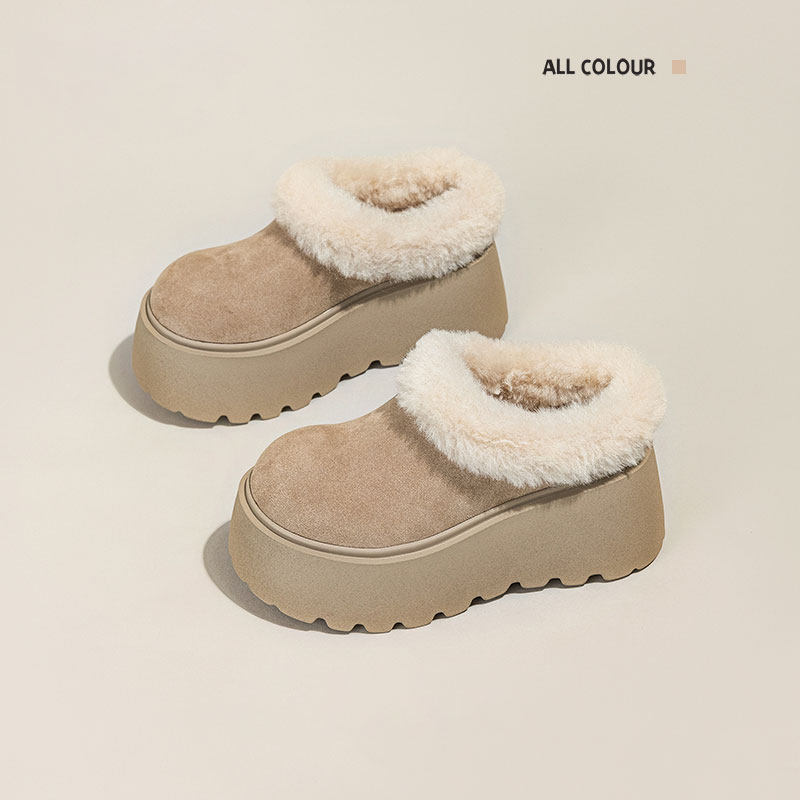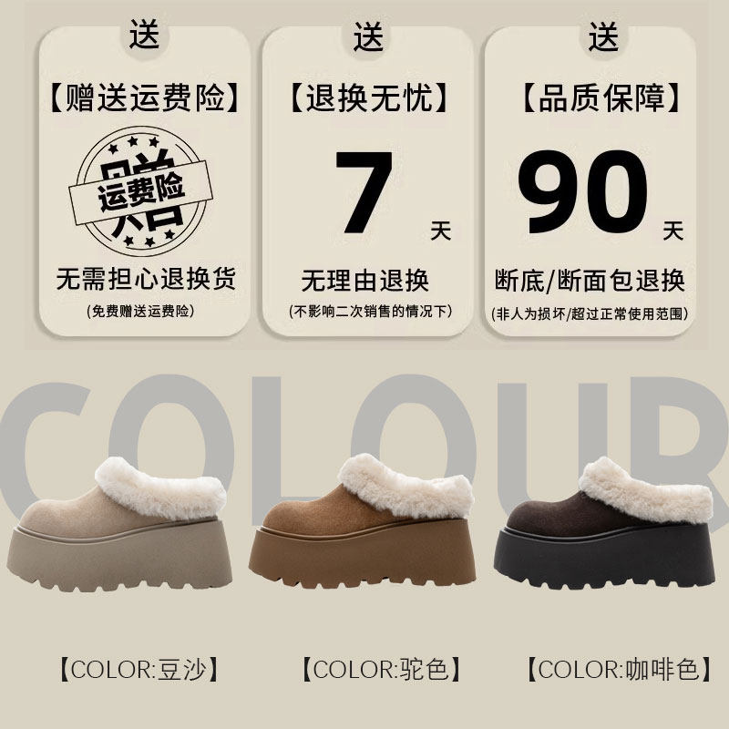 IWW厚底增高8cm包头半拖鞋女冬季加绒胖头鱼保暖懒人棉鞋大头防水