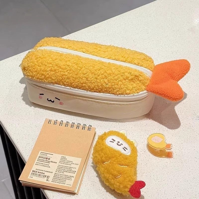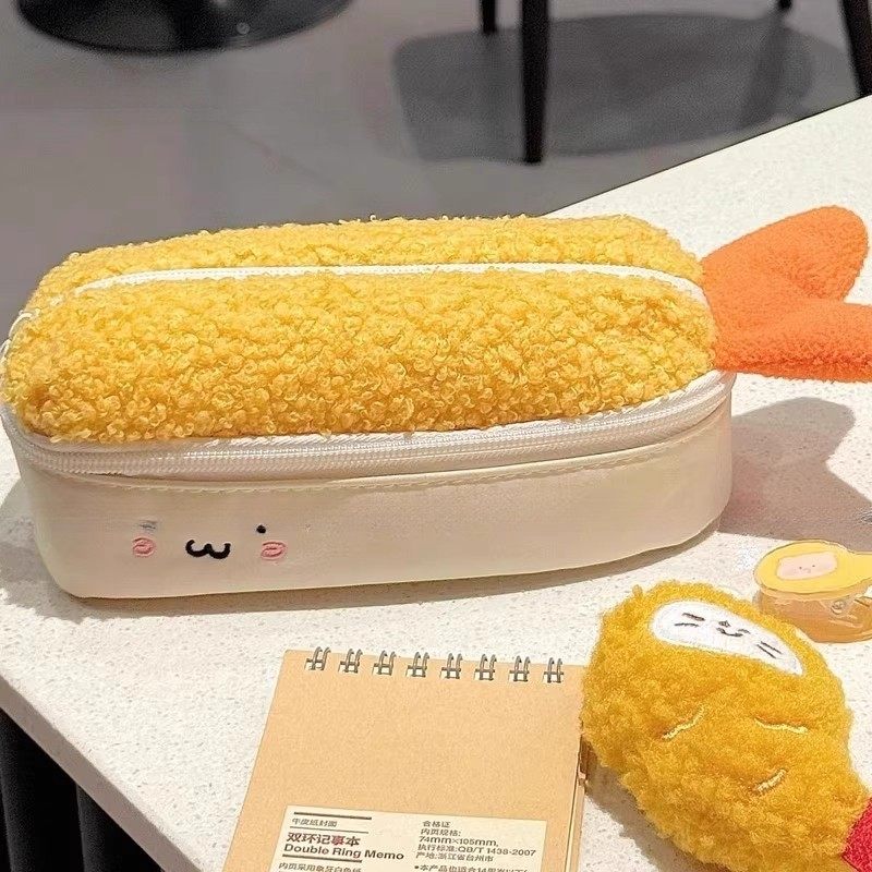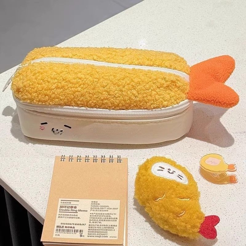 新款油炸虾尾2026新款笔袋高颜值ins风冷门笔袋文具盒女孩款大容量铅笔盒小众不撞款毛绒笔袋中小学生文具袋