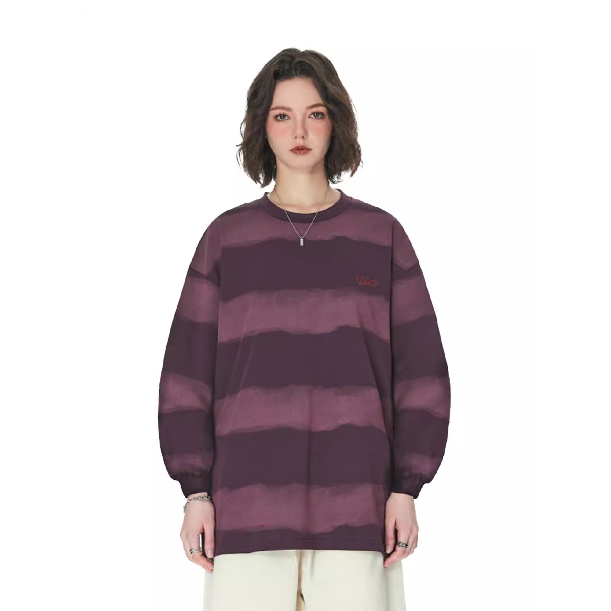 RASP刺绣扎染条纹长袖卫衣男女秋冬宽松美式复古圆领情侣原创潮牌