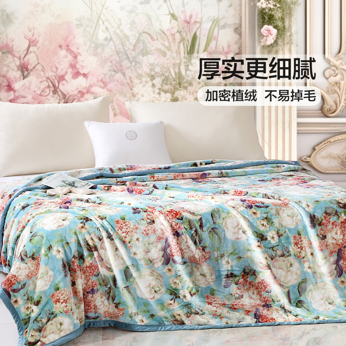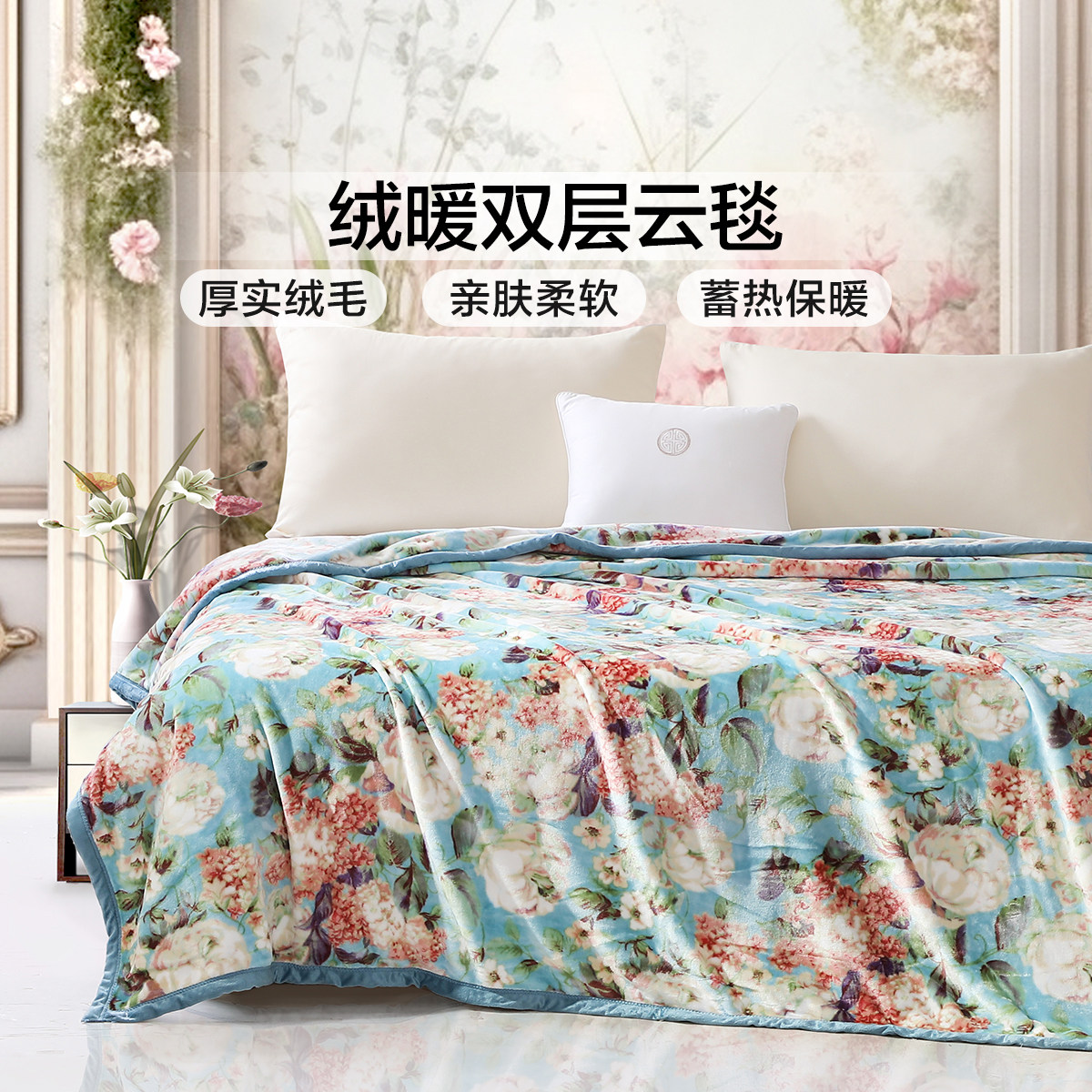 富安娜毛毯秋冬加厚双层拉舍尔毛毯婚庆保暖毯子8斤加大绒毯陪嫁