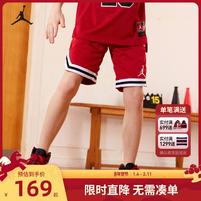 Jordan儿童装男童运动裤夏季篮球裤中大童运动短裤五分裤训练裤