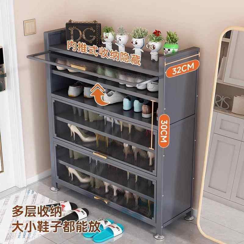 麦比梵复古格韵钢制鞋柜家用门口入户玄关靠墙中古风收纳储物柜一体鞋架床笠拉车