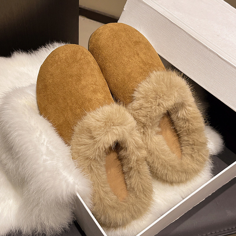 水貂毛毛勃肯半拖鞋女外穿2025新款秋冬季一脚蹬保暖懒人包头棉拖