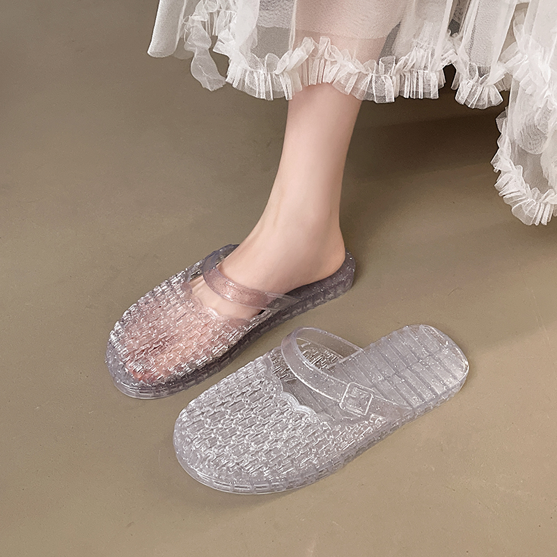 【水晶透明】凉拖鞋女夏季外穿防滑防臭包头懒人半拖中老年妈妈鞋