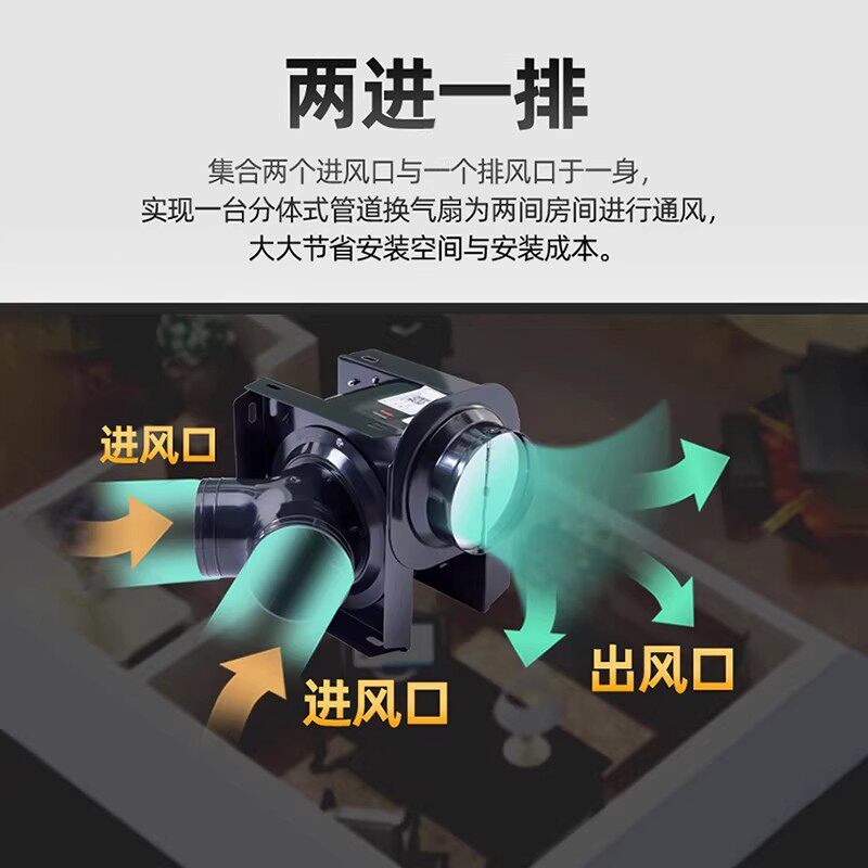 绿岛风酒店专用排风机分体管道换气一拖二卫生间抽风低音节能商用