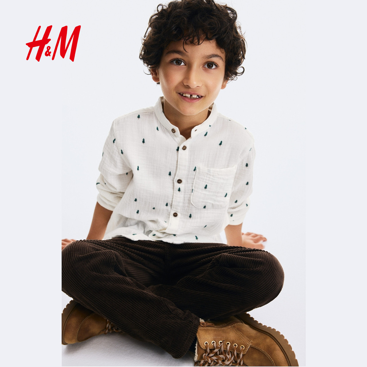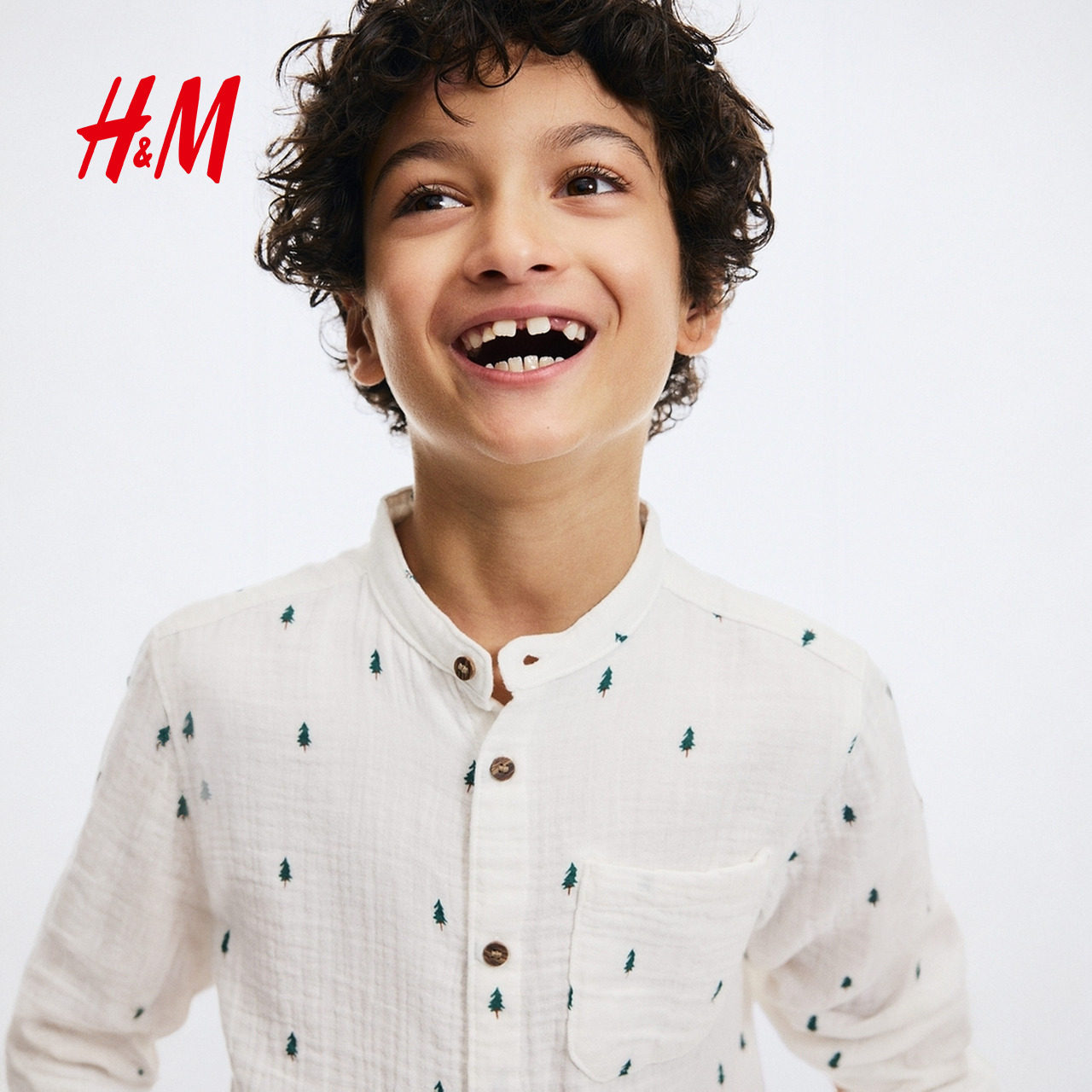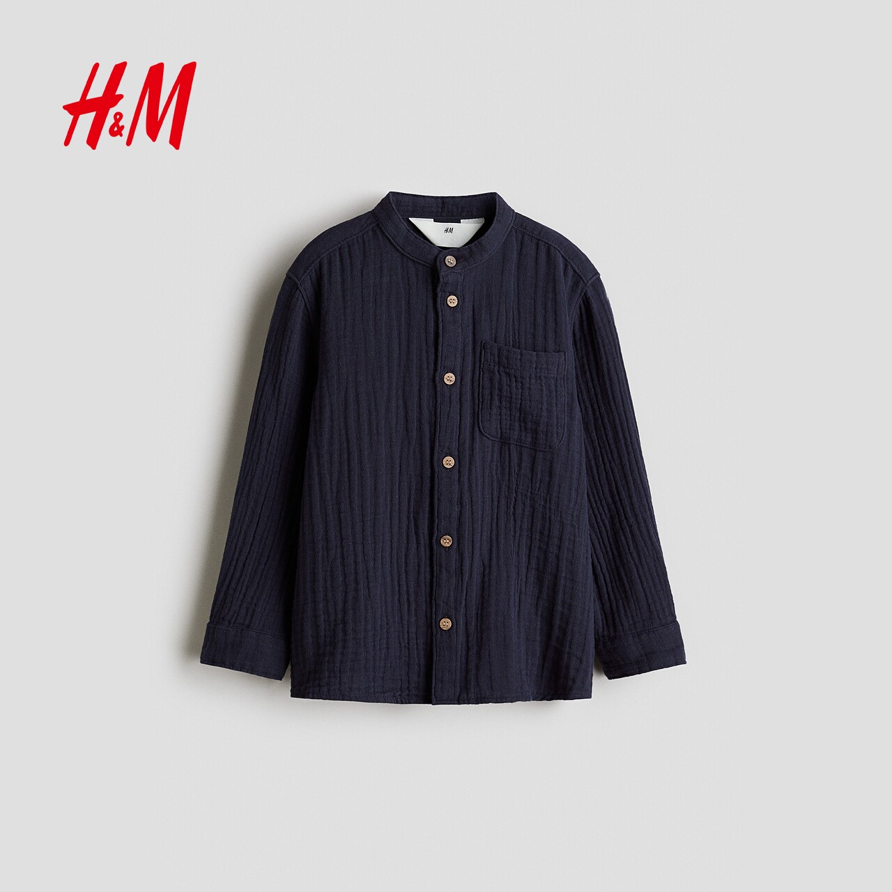HM童装儿童男童衬衫2026春季新款棉细布中式领无领衬衫1254677