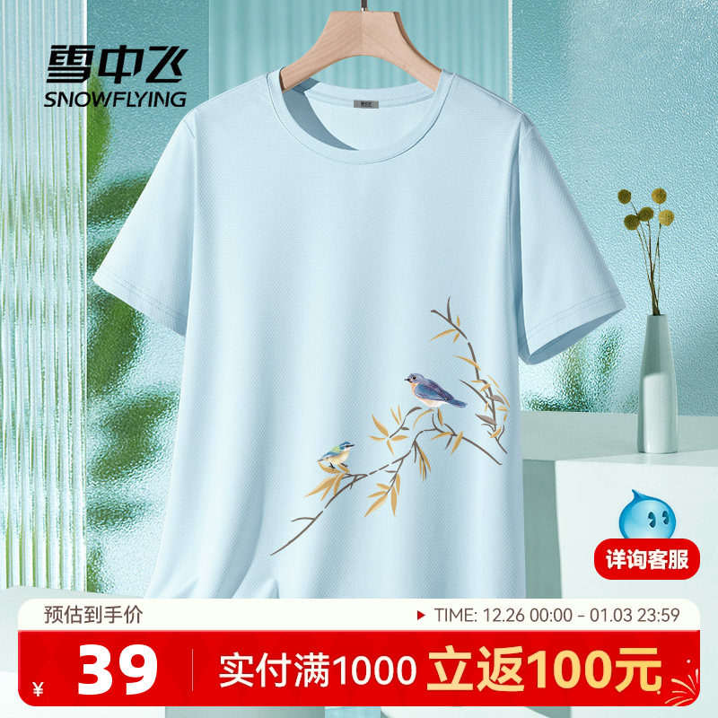 雪中飞冰丝短袖女t恤夏季中国风上衣大码胖mm女装防晒半袖体恤PC