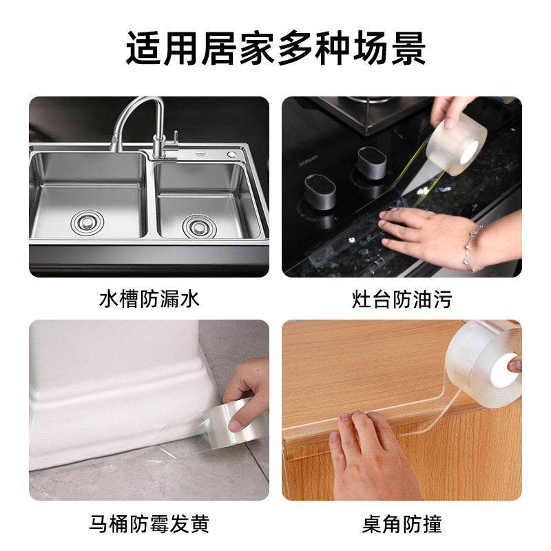 单面纳米胶带强力无痕透明灶台厨房水槽瓷砖防漏密封包边防水防霉