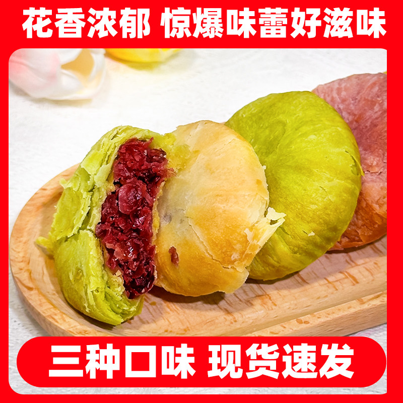 正宗鲜花饼玫瑰饼特产零食小吃传统糕点休闲食品早餐面包整箱抹茶
