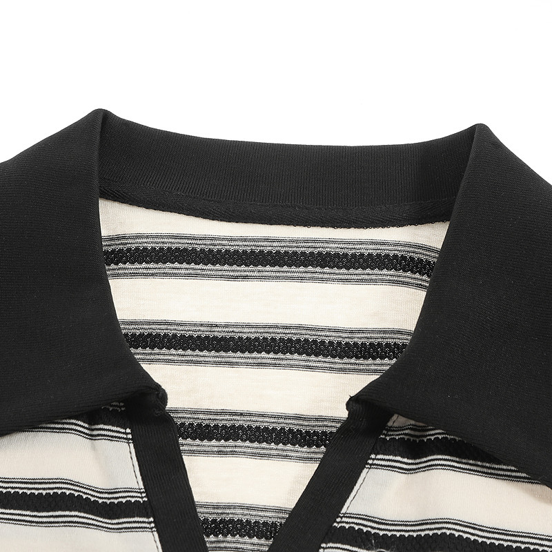 LAGOGO航海系条纹T恤女拉谷谷2026年夏季新款POLO领纯棉宽松短袖