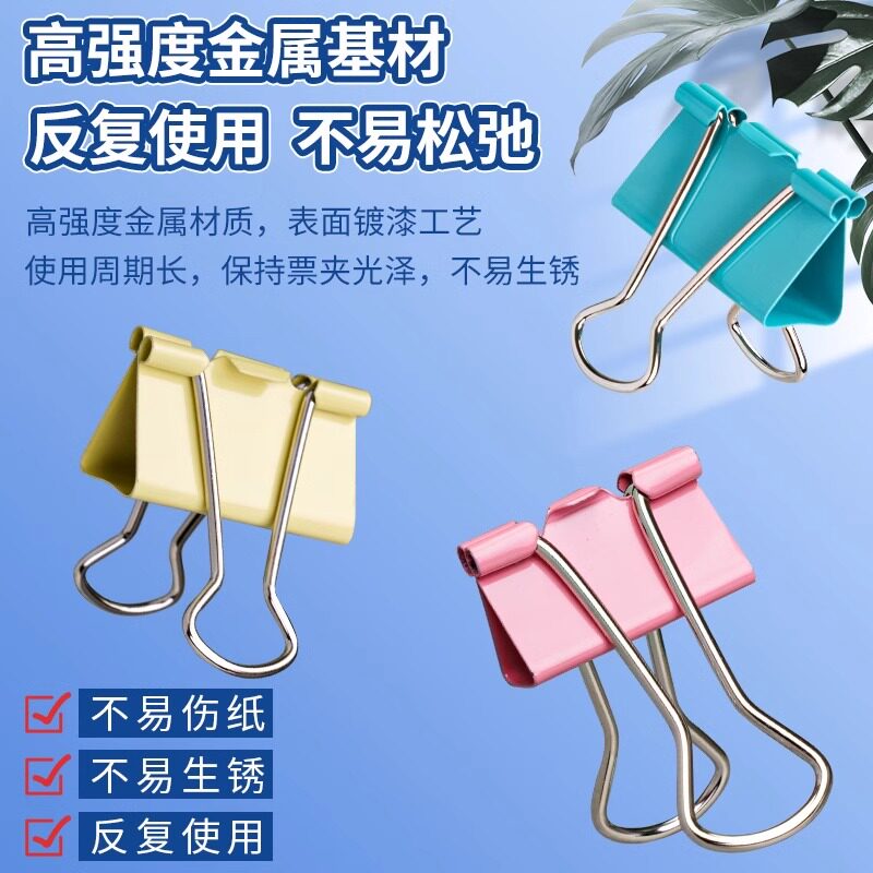 大号彩色长尾夹燕尾夹票据铁夹子混合装办公用品批发文件试卷固定书本文具夹小号蝴蝶鱼尾凤尾雁尾燕为反尾夹
