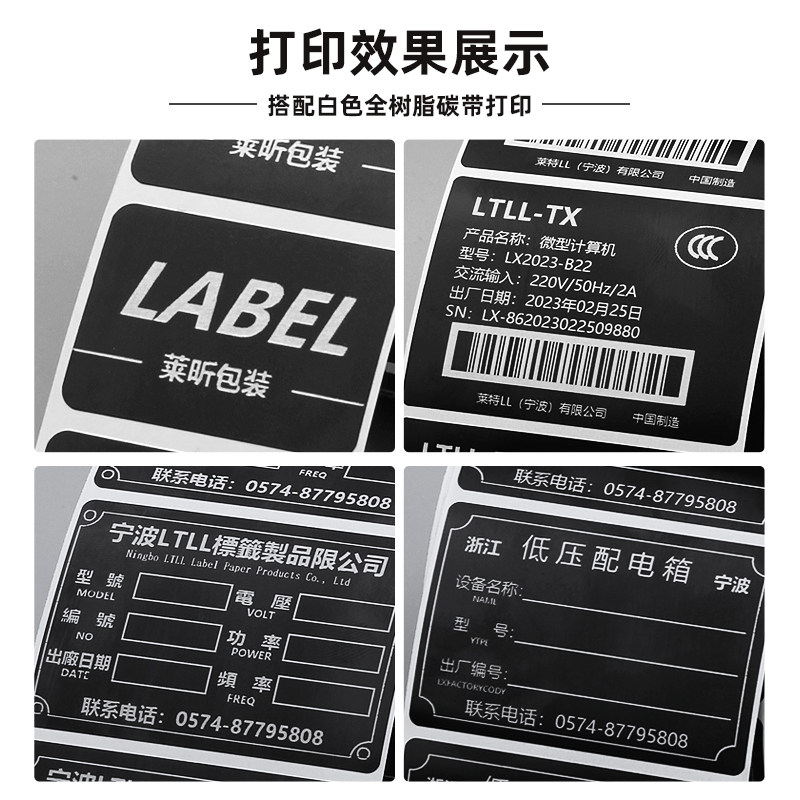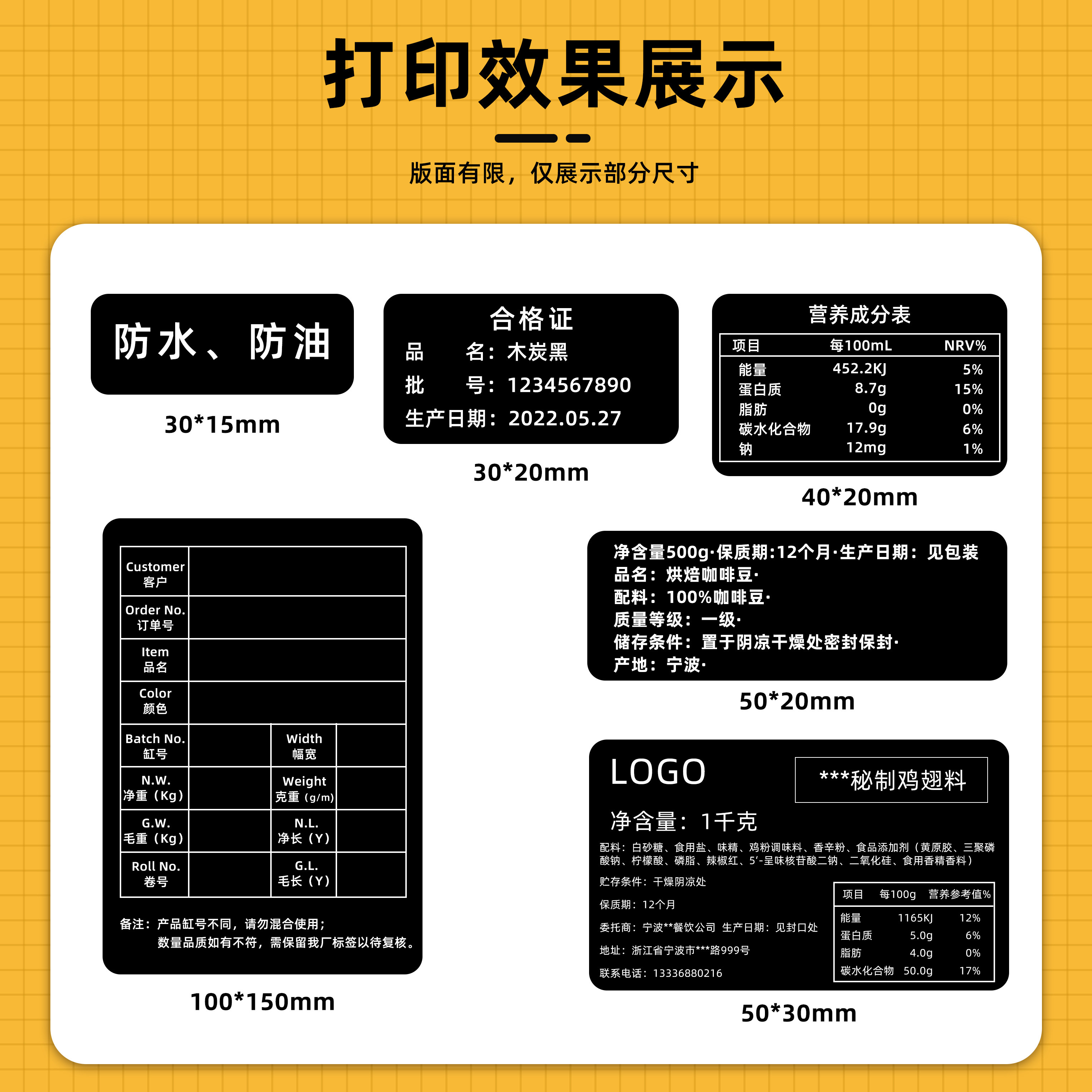 黑色PP合成纸70*50 60 40 30 20 10 15 80 90 100条码打印机白色碳带标签不干胶设备序列号铭牌PET定制贴纸