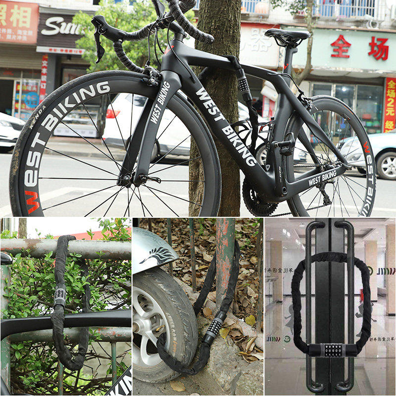 西骑者自行车锁防盗密码链条锁电动车锁机车可携式单车配件