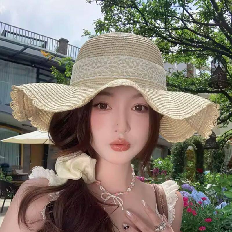海边度假夏日草帽女款2026新款大檐防紫外线沙滩帽时尚草编太阳帽