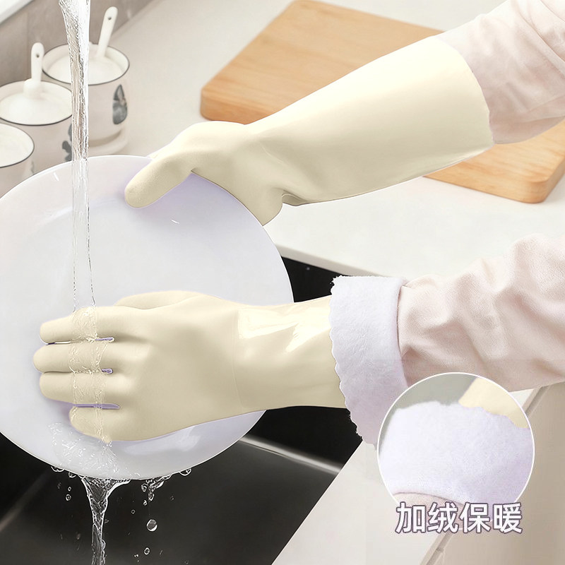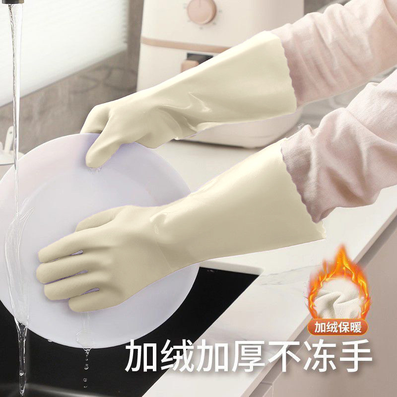 洗碗手套女加绒秋冬家务清洁耐用橡胶皮洗衣服刷碗植绒耐磨皮绒