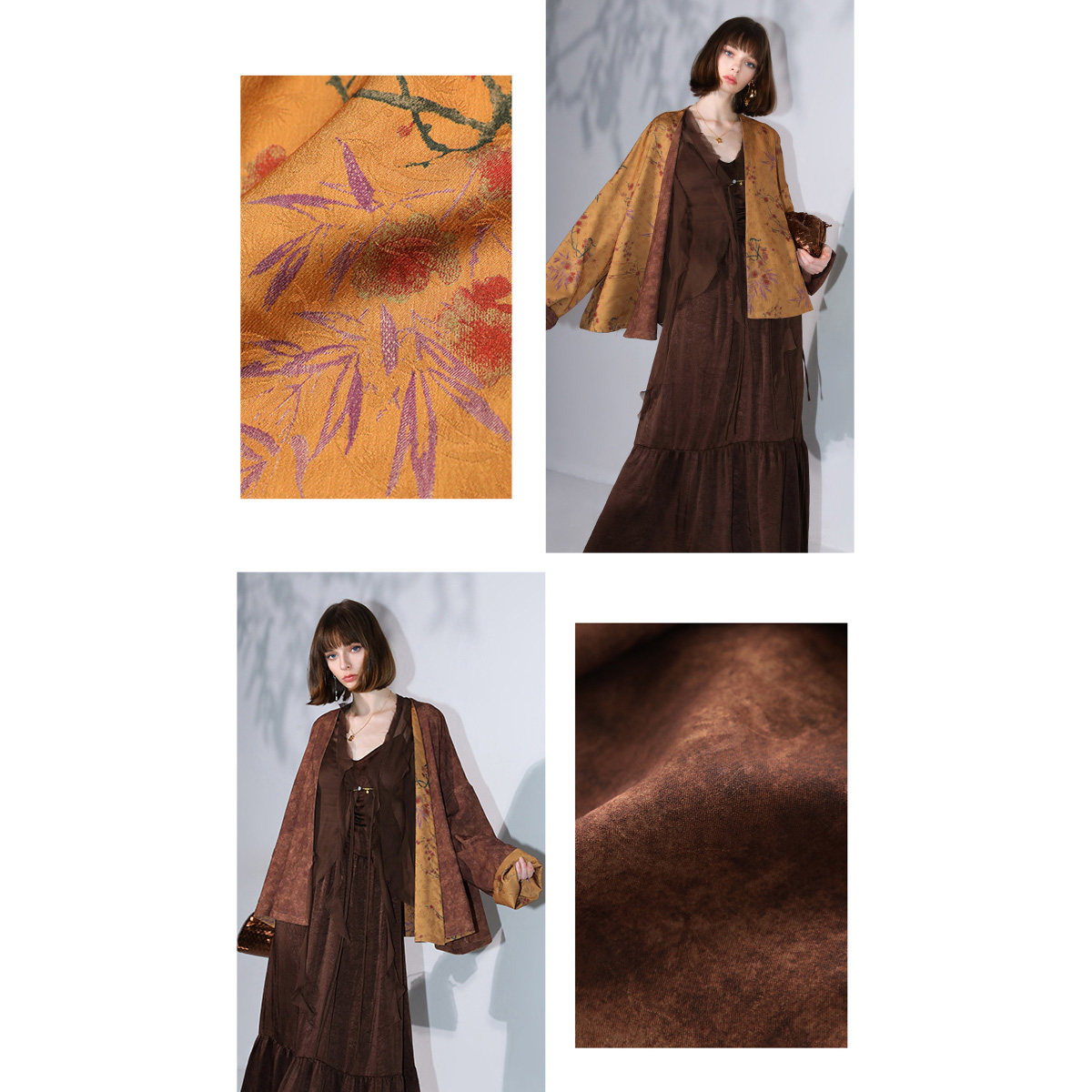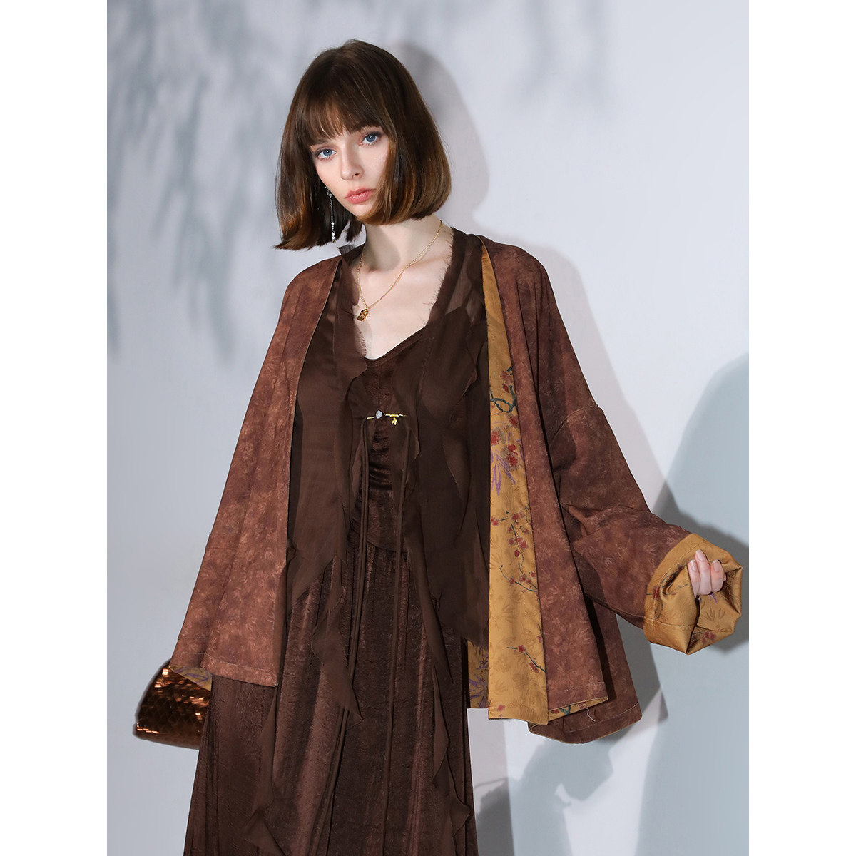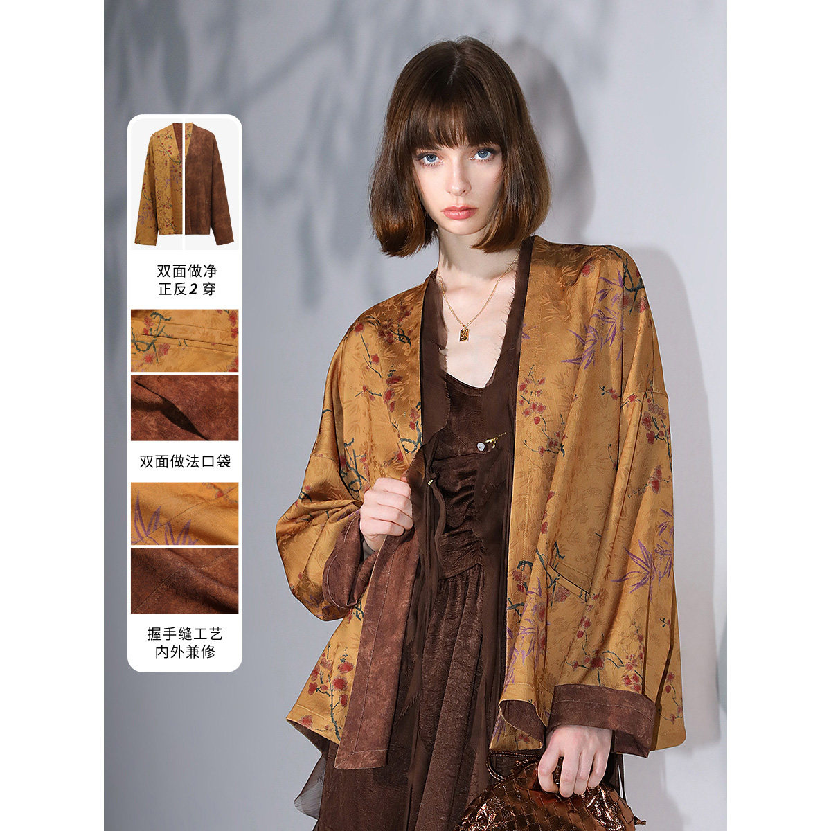 COCOBELLA新中式仿香云纱双面穿印花提花缎国风外套SC7020-2