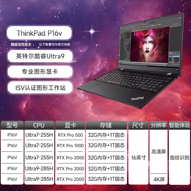 【2025新款】联想ThinkPad P16v 酷睿Ultra9+RTX Pro级显卡 16英寸绘图3D建模渲染移动图形工作站笔记本电脑