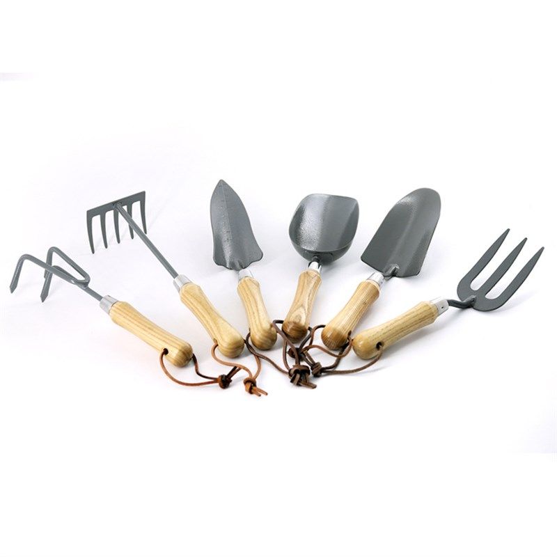 供应园艺工具不锈钢碳钢六件套园林小铲耙子木柄园林工具迷你套装