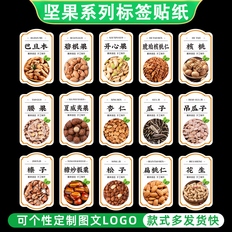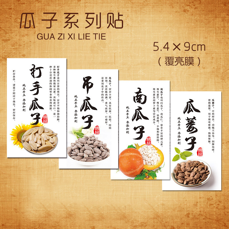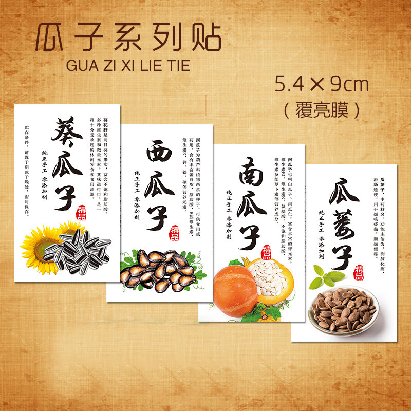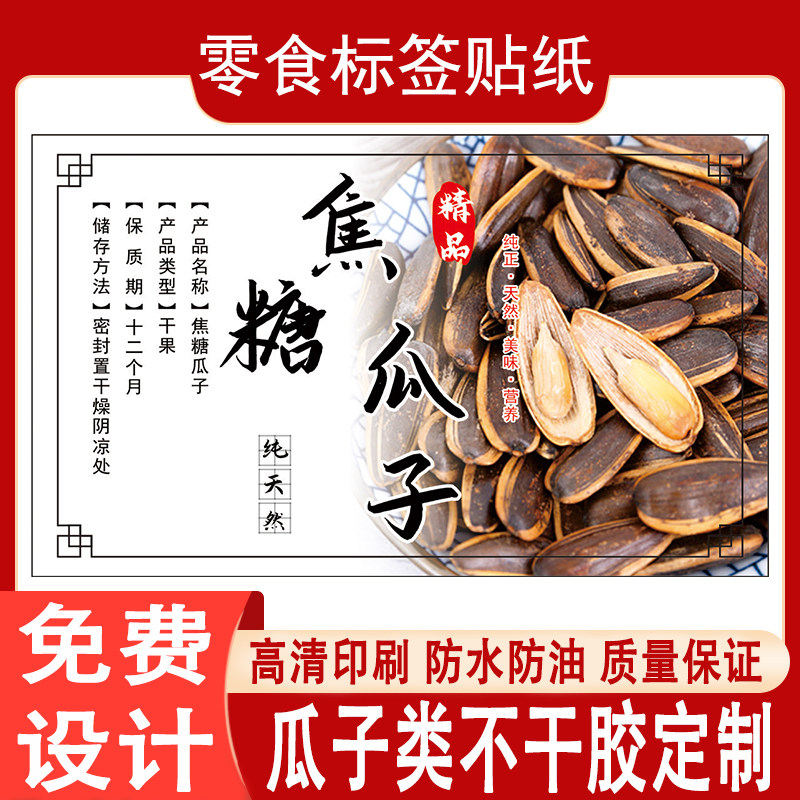 定制瓜子标签葵花籽南瓜籽贴纸山核桃焦糖瓜子西瓜子吊瓜子瓶身商标白杏仁纸皮核桃仁松子腰果干果瓶身不干胶