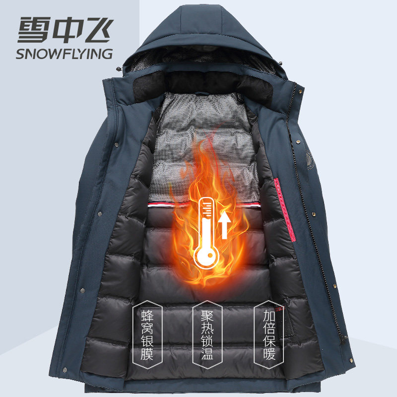 雪中飞极寒羽绒服男中长款加厚保暖冬季外套2025年新款中年爸爸装