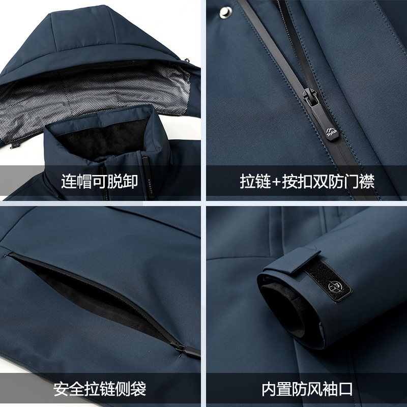 雪中飞羽绒服男中长款商务休闲冬季外套加厚保暖连帽可脱卸鹅绒服