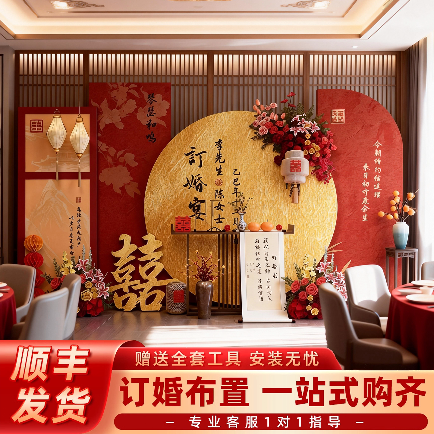 订婚宴全套摆件布置装饰套餐定亲结婚新中式场景背景墙定制kt展板