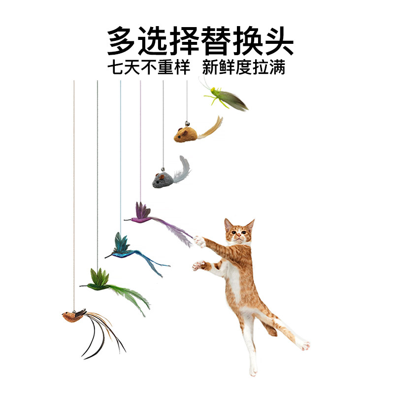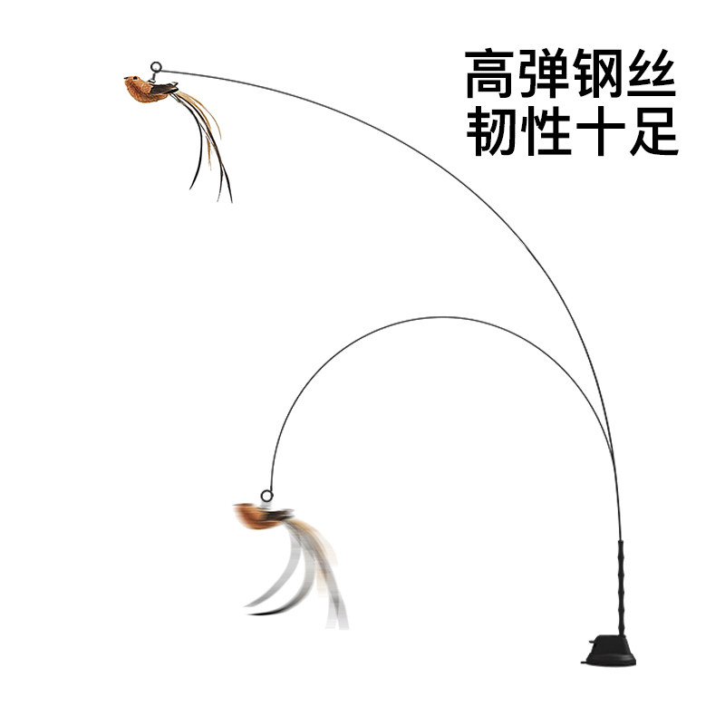 逗猫棒带吸盘自动逗猫自嗨解闷猫咪玩具长杆鸟羽毛替换头宠物玩具