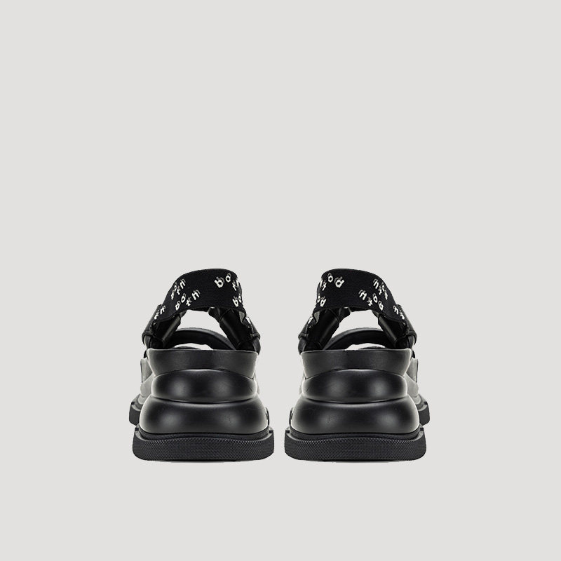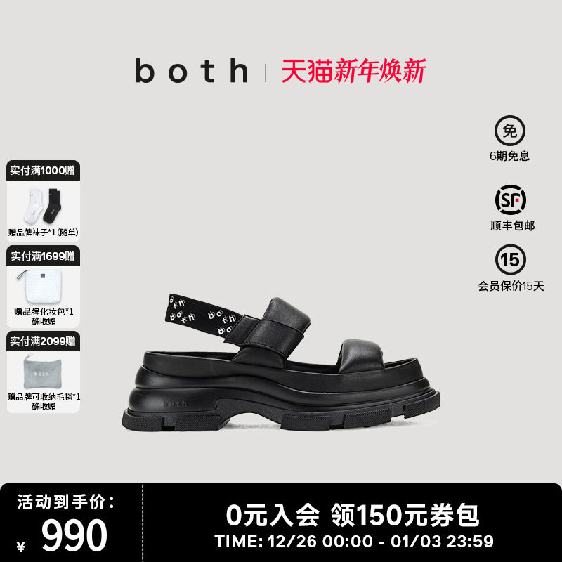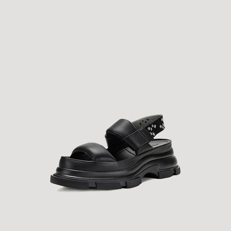 both春夏黑色厚底增高弹力带休闲真皮凉鞋沙滩鞋泡芙凉鞋鞋子