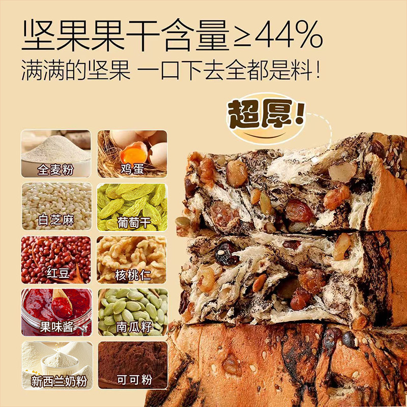 全麦坚果面包厚切吐司减无糖0早餐整箱早餐营养学生脂孕妇专用肥