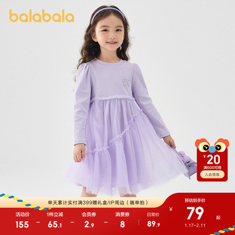 巴拉巴拉balaOne童装女公主裙2025秋冬新款儿童连衣裙针织网纱裙