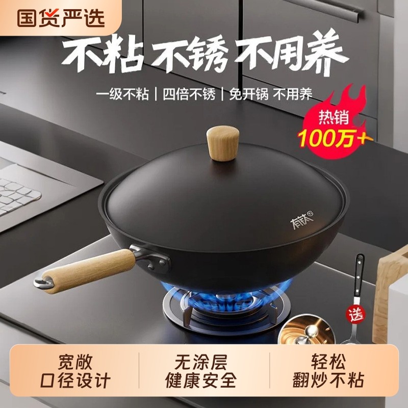 铁锅官方旗舰炒菜锅老式炒锅铁锅家用不粘锅无涂层燃气灶适用