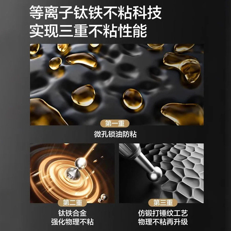 德国三头鹰无涂层钛锅不粘锅电磁炉燃气纯钛炒锅多功能家用炒菜锅
