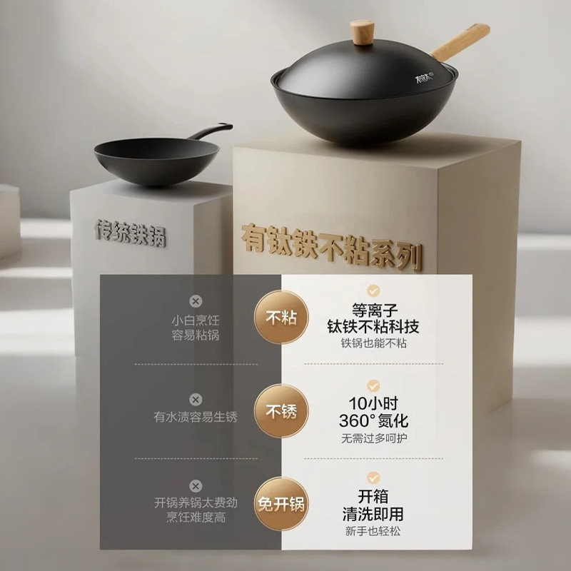 九阳铁锅无涂层炒锅家用炒菜锅不易粘锅电磁炉专用燃气灶旗舰店炊