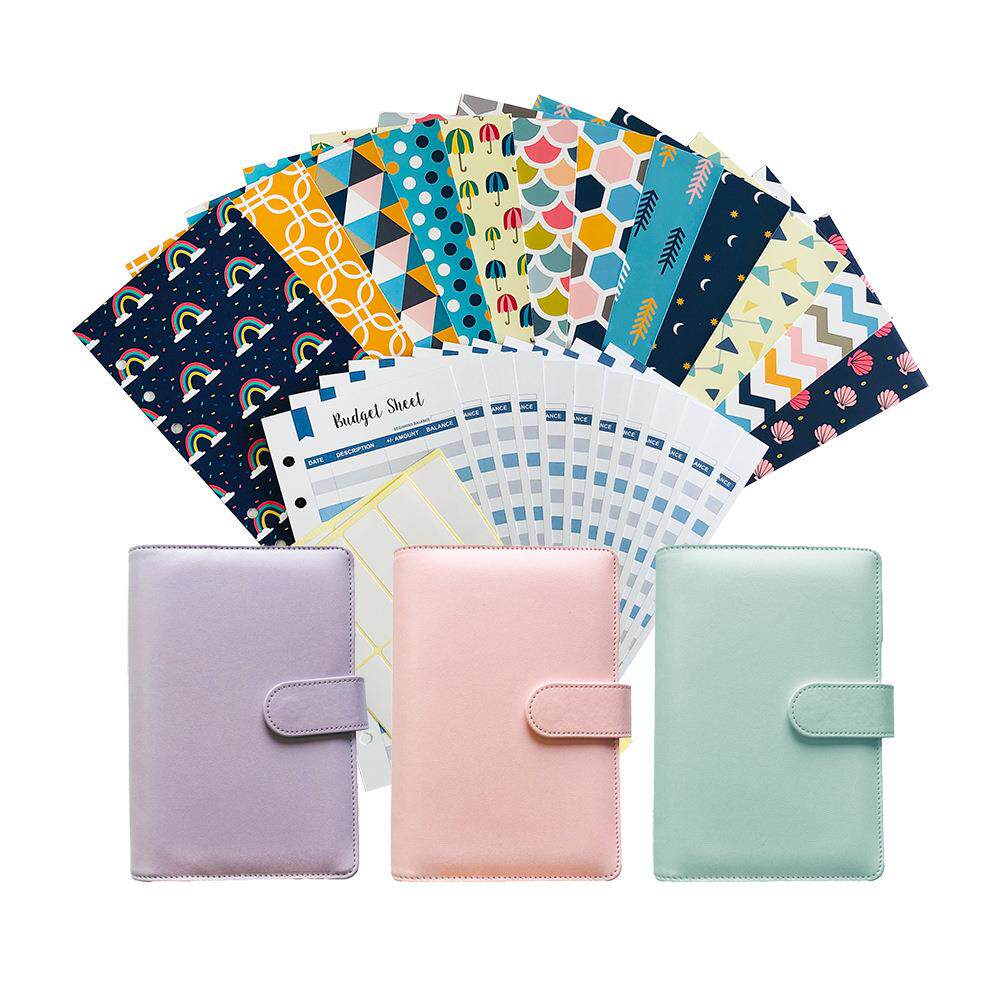 跨境西式预算现金信封手写纸质12个套装PU皮质磁扣活页本礼品