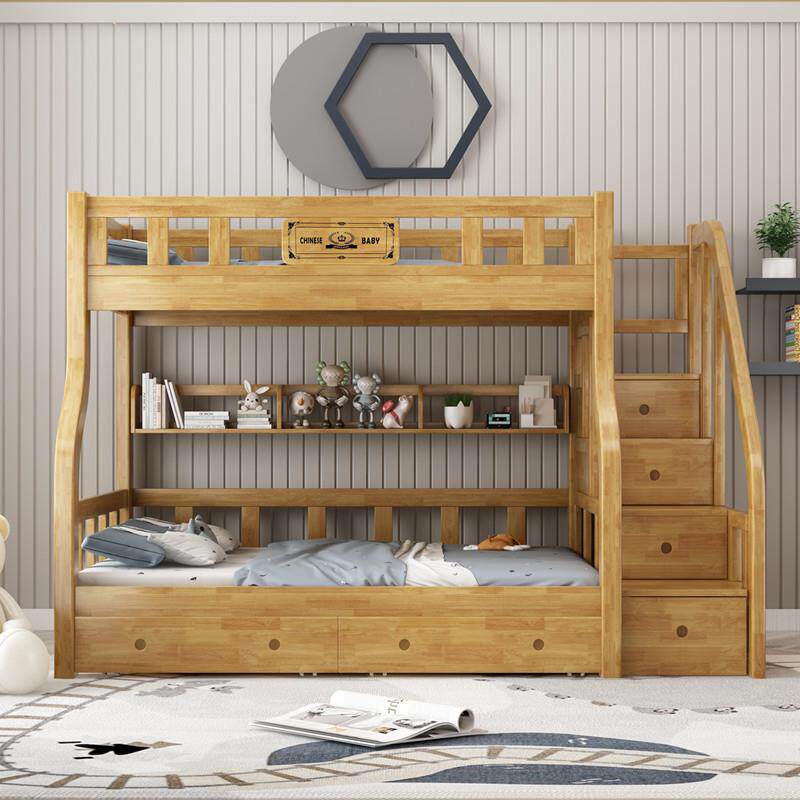 双层子母床上下床小户型原榉木色橡木实木成人高低床上下铺儿童床