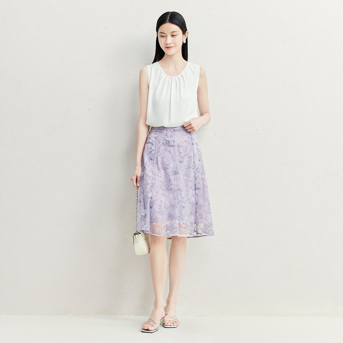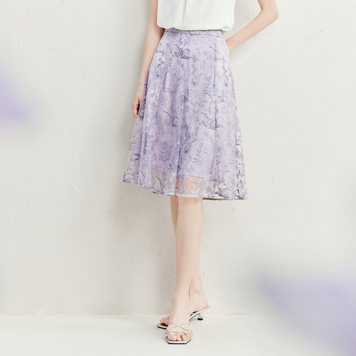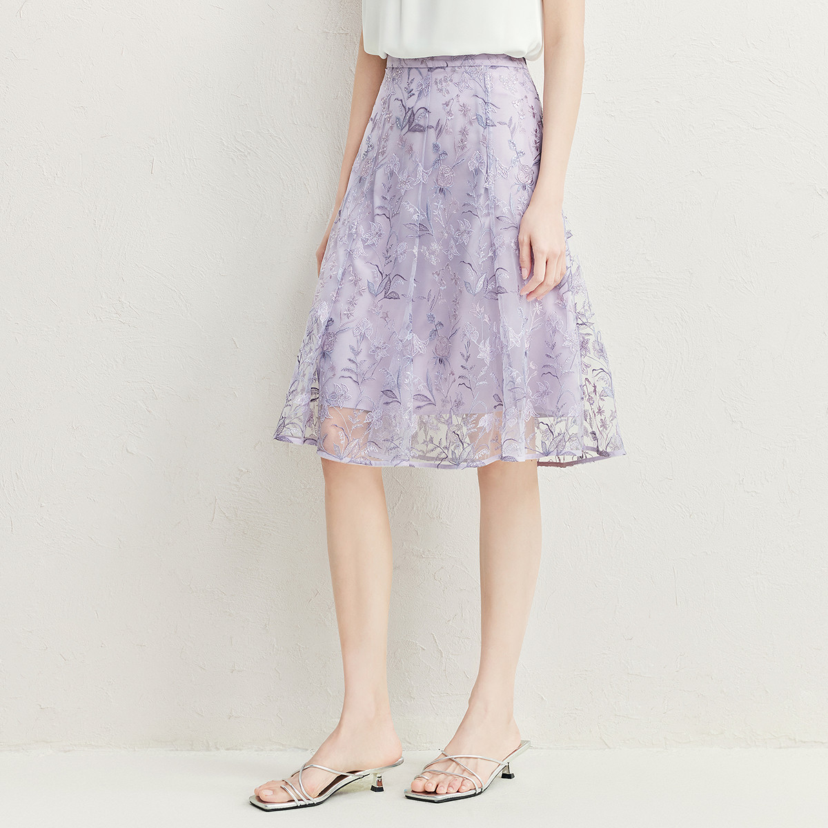 FINITY菲妮迪半身裙2026年春季新款简约紫色提花中长款减龄半裙女